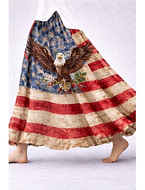 Faldas maxi informales de cintura alta con estampado gráfico, estilo vintage, para mujer, para el día de la independencia, microelásticas, para uso diario, de calle, en azul, rojo y poliéster para verano.