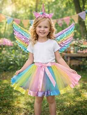 Conjunto Medieval Renacimiento lujoso Hasta la Rodilla Alas Tocados Falda de tul con accesorios Hada Disfraz Chica Fantasía Víspera de Todos los Santos Carnaval Día del Niño Fiesta Rendimiento Feria