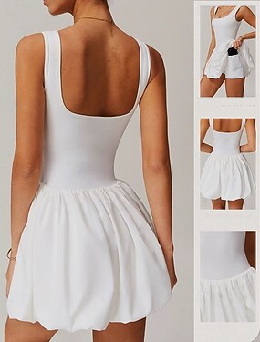 Mujer Color sólido Vestido de tenis Faldas de tenis con pantalones cortos Vestido deportivo Sin Mangas Retazos Bolsillo Absorción de impacto Transpirable Tenis Golf Corriendo Cuello Barco Vestidos