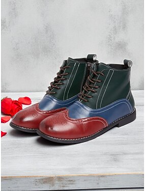 Botines oxford con bloques de color para mujer con diseño de cordones y cremallera lateral, botas casuales de moda estilo brogue vintage de los años 50 para uso diario. &atuendo de calle