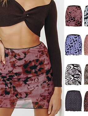 Mujer Falda de vacaciones Moda Casual Mini Alta cintura Faldas Graphic Leopardo Flores Estampado Alta elasticidad Diario Calle Leopardo Azul marinero Rosa oscuro Negro Verano Poliéster