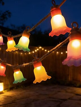 Luces de hadas con forma de falda de ballet alimentadas por energía solar, 5 m, 20 LED, luces de jardín impermeables para fiestas, bodas, jardines, balcones y decoración al aire libre.