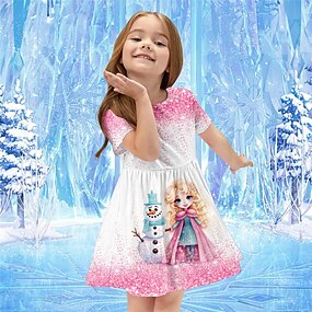 Girls ' 3D Caricatura Princesa Vestido Rosa Manga Corta Impresión 3D Verano Diario Festivos Casual Hermosa Niños 3-12 años Vestido informal Vestido de Patinaje Sobre la rodilla Ajuste regular
