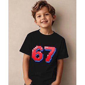 Algodón Niños Chico Negro Blanco Graphic Jerga divertida 67 Camiseta Blusa Cuello Barco Manga Corta Exterior Uso Diario Moda Ropa de calle Design Verano