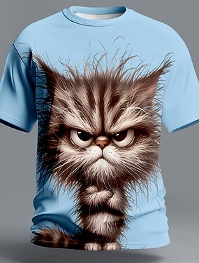 Hombre Animal Gato Gracioso Camiseta Manga Corta Camiseta Impresión 3D Cuello Barco Camisa Exagerado Design Fiesta Festivos Azul Piscina Blanco Verde Trébol Verano Primavera Ropa S M L XL XXL XXXL