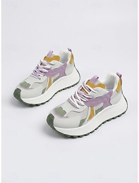 Zapatillas blancas de plataforma gruesa para mujer: zapatillas estilo "dad shoes" transpirables y ligeras con suela gruesa para caminar a diario y para looks casuales. &ropa urbana de calle