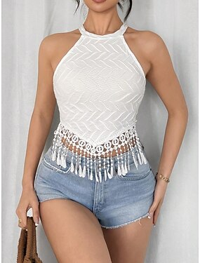 Mujer Camiseta sin mangas Blusa Camiseta sin mangas tipo camisola Camisa sin mangas Franja Plano Bohemia Clásico Casual Sin Mangas Cuello halter Tops cortos Diario Festivos Noche Negro Blanco Verano