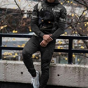 Hombre Tracksuit Conjunto de sudaderas con capucha Amarillo Gris Oscuro Marrón Negro Con Capucha Graphic Animal 2 Piezas Estampado Deporte Casual Deportes Impresión 3D Básico Ropa de calle Ropa