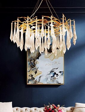 Lámparas de araña con ramas de árboles doradas, 60/80 cm, lámpara colgante de cristal rectangular de lujo con forma de gota de agua, 13 luces, lámpara colgante de techo para salón, comedor, vestíbulo,