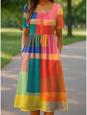 Mujer Vestido Midi Vestido informal Vestido de verano Vacaciones Casual Estilo playero Festivos Ajuste regular Graphic Geométrico Abstracto Manga Corta Camiseta con cuello redondo Azul Piscina Negro