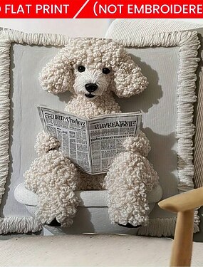 Funda de almohada con diseño de perro lector, con estampado plano 2D, suave y corta, de felpa decorativa con bordado falso para sofá, dormitorio, sala de estar, decoración del hogar, funda de almohada sin relleno.