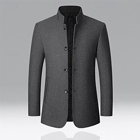 Hombre Abrigo de invierno Abrigo de lana Sobretodo Exterior Negocio Otoño invierno Lana Resistente al Viento Templado Ropa de calle Ropa Estilo moderno Color sólido Escote Chino Botonadura Simple