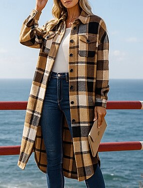 Mujer Navidad Cuadros A Cuadros Gabardina de un solo pecho Otoño invierno Con bolsillos Manga Larga Ropa Deportiva Resistente al Viento Templado Senderismo Corriendo Viaje Vocación Yoga Negro Rojo