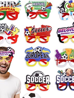 Detalles de Fiesta del Torneo Mundial de Fútbol para Niños Paquete de 12 Gafas Temáticas de Fútbol Divertidas Gafas de Papel para Bolsas de Regalo de Cumpleaños Accesorios para Photo Booth