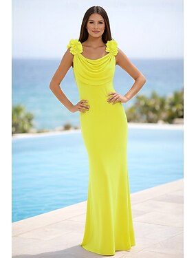 Funda Columna Hasta el Suelo Vestido Invitada Boda Vestido formal Vestido de noche Trajes de gala Elegante Sin Mangas Cuello vuelto holgado Fiesta de baile Formal estiramiento de gasa con Flor