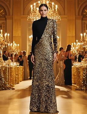 Vestido de invitada de boda de longitud de piso en A vestidos formales vestido de gala vestido de madre de la novia vestido de manga larga escote alto elegante vintage brillar y resplandecer spandex