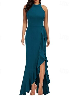 Mujer vestido largo vestido largo Vestido de Fiesta Gasa Vestido de raso Elegante Moda Moderno Exterior Fiesta de Noche Fiesta Ajuste regular Plano Sin Mangas Escote en Pico Negro Vino Rojo Morado