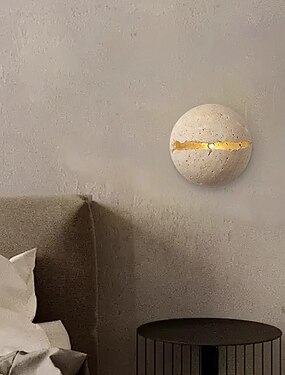 Apliques de pared para interiores modernos de travertino amarillo, lámparas de pared con globo artístico de piedra, apliques para dormitorio, sala de estar, lámpara de pared G4.