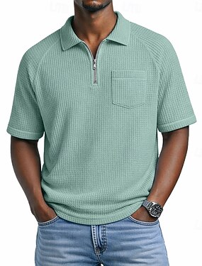 Hombre Camisetas polo con diseño de gofre Camisetas polo Casual Diario Diseño Manga Corta Moda Básico Plano Botones Cremallera de un cuarto Verano Ajuste regular Azul Zafiro Negro Blanco Verde Trébol