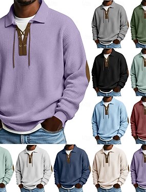 Hombre Camisetas polo con diseño de gofre Camisetas polo Casual Calle Diseño Manga Larga Básico Moderno Plano Acordonado Primavera Otoño Ajuste regular Negro Blanco Verde Claro Vino Azul Marino Morado
