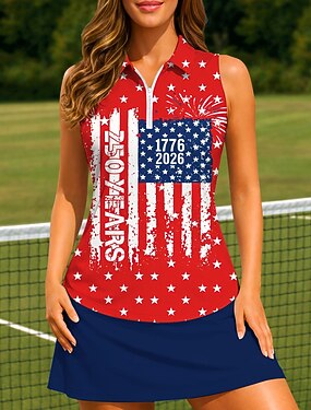 250 aniversario de Estados Unidos Día de la Independencia Unisexo Bandera Camisa deportiva Camisas de polo Camiseta de tenis Sin Mangas Cremallera Floral UPF50+ Resistente a los rayos UV Alta