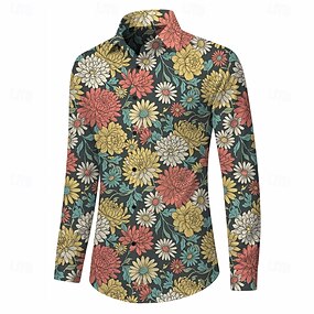 Retro Antiguo Años 70 Camisas Camisa hawaiana Larga Hippie Floral Disfraz Hombre Mascarada Festival de Música Fiesta Ropa Cotidiana Adulto Camisas
