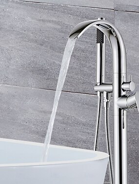 Grifo de bañera montado en el suelo, grifos mezcladores de llenado de bañera independientes, latón, caño giratorio de arco alto de 360 grados, ducha de pie, bañera con patas con grifos mezcladores de ducha de mano