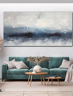 Conjunto de 2 pinturas abstractas de paisajes pintadas a mano, arte mural original, conjunto de 2 paisajes azules &Arte de pared para sala de estar con diseño acogedor en tonos grises