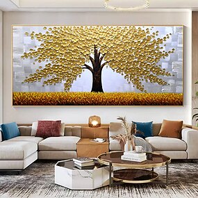 Gran tamaño hecho a mano pattle cuchillo flor de oro pintura al óleo pintada a mano textura árbol pintura arte de la pared paisaje moderno pintura al óleo para la decoración del hogar decoración