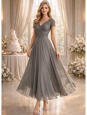 Vestido A-Line para la madre de la novia Boda Formal Invitada de boda Elegante Simple Minimalista Escote en V Longitud de té Chifón Manga corta con pliegues fruncidos