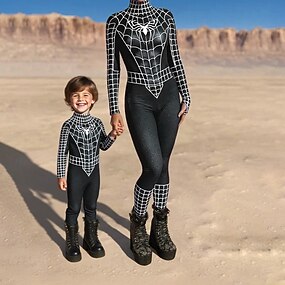 Mirada familiar Mono Patrón de halloween Calle Estampado Plata Negro-1 Negro Manga Larga Trajes a juego