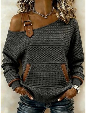 Mujer Blusa Retazos Color sólido Elegante Casual Manga Larga Asimétrico Tops regulares Diario Gris Primavera Otoño