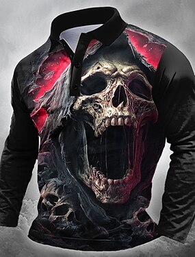 Día de los muertos Hombre Cráneos Polo Manga Larga Camisas de polo Diseño Casual Exterior Calle Ropa Deportiva Impresión 3D Botones Primavera Otoño Invierno Negro 1 Negro 2