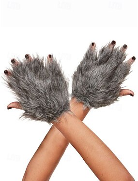 Guantes peludos con garra de hombre lobo para mujer: accesorios para disfraces de Halloween, guantes esponjosos con garra de monstruo para fiestas y disfraces.