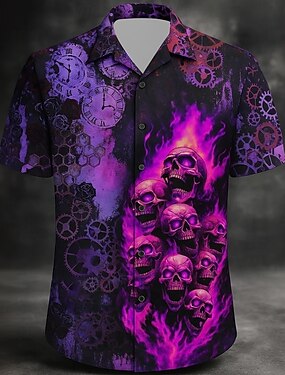 Camiseta de Hombre Traje de Esqueleto Camisa de Botón de Manga Larga Moda Gótica Ropa Diaria Para Salir Primavera y Verano Cuello Caído Impresión Camisa de Botón Amarillo Púrpura Caqui Gris