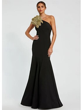 Corte Trompeta Sirena Hasta el Suelo Vestidos de noche Corte Cenicienta Vestimenta formal Elegante Vintage Sin Mangas Un Hombro Boda Formal Capas Crepé elástico con Brillante Flor de Shouder