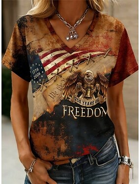 4 de julio de 2026 250 ° Día de los Caídos T-shirt de cuello redondo corta impresión 3D bandera americana veterano masculina patriótico patriota urbana