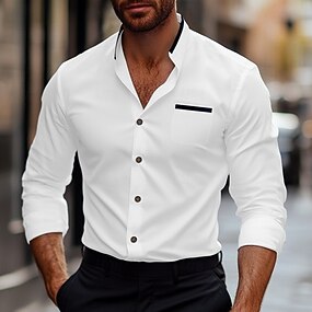 Hombre Camisa Camisa de lino Camisa de verano Ropa de playa Abotonar la camisa Plano Vacaciones Casual Azul Piscina Negro Blanco Rosa Manga Larga Cuello Vuelto Primavera verano Ropa