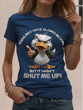 Mujer Camiseta Retazos Estampado Gato Letra Argot divertido Básico Manga Corta Escote Redondo Tops regulares Diario Azul Piscina Azul Marino Verano Primavera Otoño Invierno I'm Fine Everything Is Fine