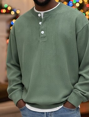 Hombre Camisa de Pana Henley Shirt Tee Manga Larga Color sólido Plano Moda Design Casual Abotonar Henley Exterior Casual Diario Otoño invierno Todas las Temporadas Rojo retro Negro Blanco Camiseta