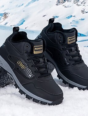 Botas de senderismo de invierno negras para hombre, botas impermeables y aislantes para la nieve, exploración al aire libre y senderismo invernal, calzado duradero para condiciones de frío.