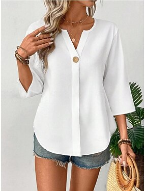 Mujer Camisa de gofres Color sólido Elegante Activo Vacaciones Media Manga Escote en Pico Tops largos Diario Exterior Ropa de calle Blanco Rojo Azul cielo Naranja Negro Verano Primavera Otoño
