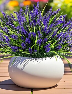 8 manojos de plantas y flores artificiales para decoración primaveral al aire libre, de seda sintética, de color violeta, resistentes a los rayos UV, realistas, para porche, patio, jardín, macetas y jardineras (surtido).