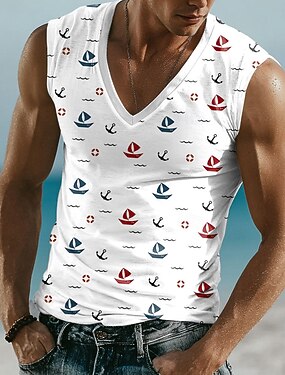 Camiseta sin mangas con cuello en V y estampado de ancla de velero náutico para hombre, estilo playero, clásica, cómoda, informal, deportiva, tallas S, M, L, XL, XXL y XXXL.