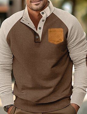 Hombre Sudadera Pana Pull-over Azul Piscina Albaricoque Negro Marrón Caqui Cuello Mao Bloque de color Retazos Táctico Deporte Casual Poliéster Ropa de calle Casual De Deporte Primavera verano Ropa