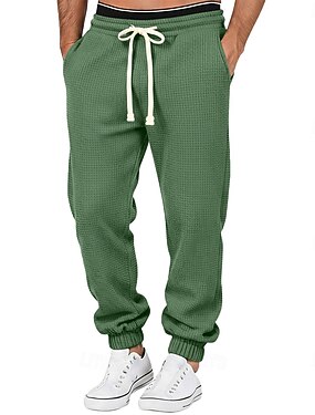 Hombre Waffle Pantalones de Deporte Pantalón Jogger Pantalones Pantalones casuales Correa Puño elástico Color sólido Comodidad Longitud total Diario Exterior Ropa de calle Vacaciones Moda Negro Blanco