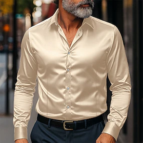 Hombre Camisa Como la seda Camisa de raso Camisa para Vestido Camisa casual Abotonar la camisa Plano Formal Negocio Negro Blanco Amarillo Rosa Manga Larga Diseño Primavera & Otoño Todas las Temporadas