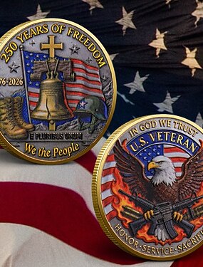 Moneda conmemorativa del 250.º aniversario de Estados Unidos con la bandera estadounidense y diseños de águilas majestuosas para conmemorar 250 años de historia. Artículo de regalo.