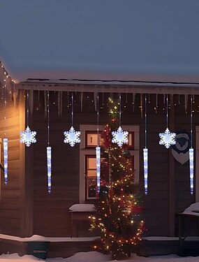 1 guirnalda de luces LED navideñas con forma de mariposa, cono de hielo, pentagrama, árbol de Navidad, copo de nieve, carámbano, hadas, para exteriores, para decoración de fiestas de Año Nuevo en el
