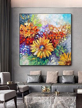 Mintura pinturas al óleo de girasol hechas a mano sobre lienzo, decoración de arte de la pared, imagen abstracta moderna para decoración del hogar, pintura enrollada sin marco y sin estirar